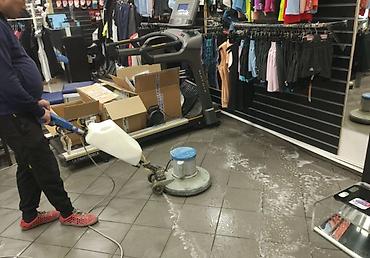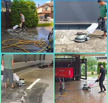 - Машинная мойка полов роторными поломоечными машинами с щетками/пэдами.