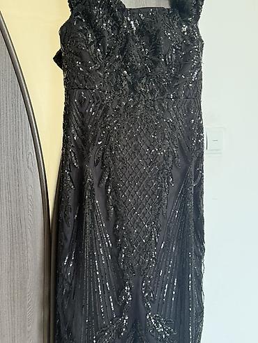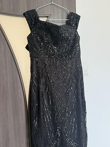 Вечернее черное платье в пол с пайетками и вышивкой.