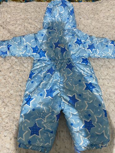 Детский зимний комбинезон бежевого цвета. Особенности: - Теплый, с мягкой светлой подкладкой по всему изделию. - Капюшон с утяжкой по краю. - Две длинные боковые молнии от горловины до низа для уд...