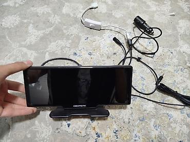 Автомобильный мультимедийный монитор OBDPEAK с встроенным видеорегистратором и комплектом проводов.