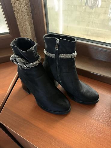 Женские ботильоны черные с декором - Модель: ботильоны на устойчивом