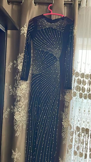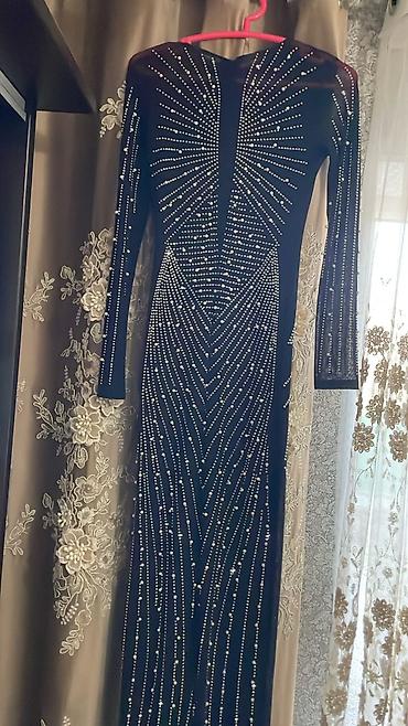 Вечернее платье в пол с длинными рукавами, черного цвета. Эластичная