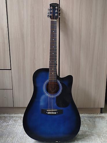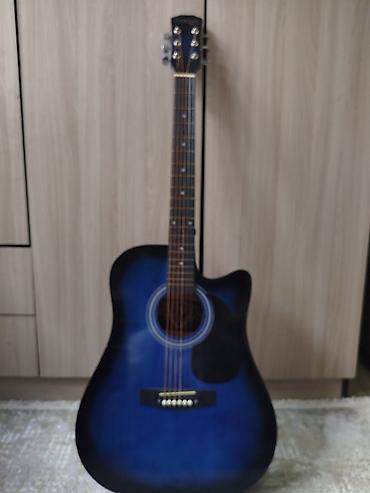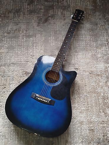 Акустическая гитара с вырезом (cutaway), тип корпуса Dreadnought. Окраска градиентная сине-черная, глянец.