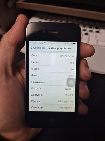 - На экране «Об этом устройстве» видно: песни — 103, видео — 26, фото — 387, программы — 2.