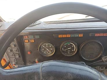 - Внутри кабины водителя: три сиденья, приборная панель, рычаги управления, рулевое колесо грузового типа.