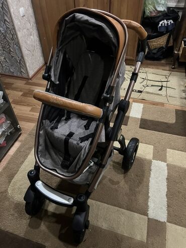 Детская коляска-трансформер 2-в-1, бежевый цвет. Основные особенности: - Два модуля: люлька для новорождённого и прогулочный блок, установка в обоих направлениях. - Большой капюшон с секцией на мо...Вход•Регистрация