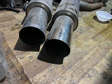 - Конфигурация: 2 отдельных глушителя с приваренными прямыми насадками