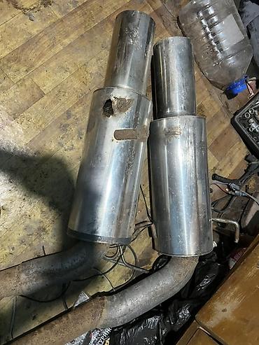 Глушитель с двойным выхлопом (самодельный/тюнинг) - Конфигурация: корпус прямоугольной формы с двумя выходными насадками. - Насадки: полированные, из нержавеющей стали, скошенный срез, диаметр ори...