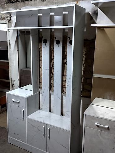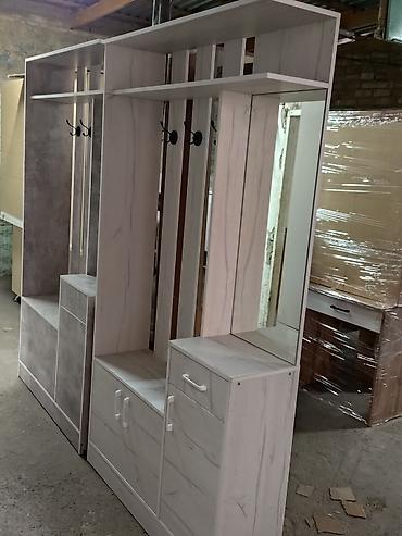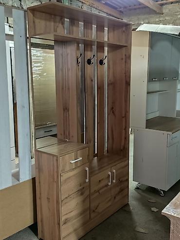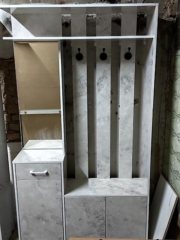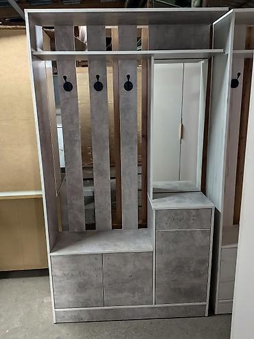 Подходит для организации входной зоны: хранение обуви и аксессуаров, размещение верхней одежды, поверхностей для мелочей на верхней полке и тумбе. Возможны разные варианты декора, как на фото.