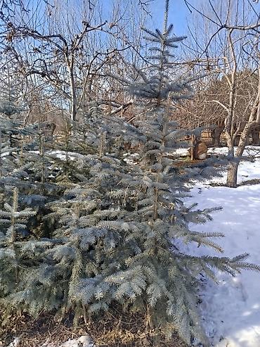 - Порода: Picea pungens (Blue Spruce), выраженная голубая окраска хвои круглый год.