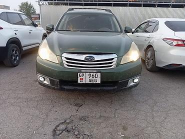 Subaru Outback – универсал с полным приводом и атмосферным оппозитным мотором. Цвет кузова – тёмно‑зелёный металлик.