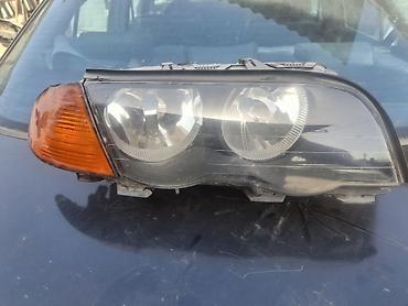 - Левая передняя фара E36: двухсекционная, под лампы H1/H1, с оранжевым повторителем поворота. Корпус со штатными креплениями, разъёмы под заводскую проводку.