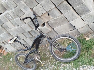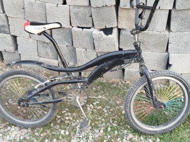 BMX-велосипед с низкой рамой и высоким рулём. Характеристики: - Тип