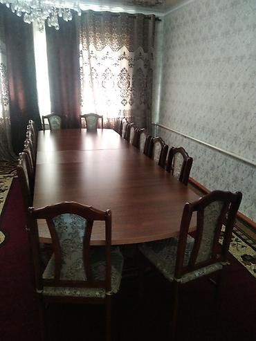 Элегантный обеденный стол из темного дерева, способный разместить большое количество гостей. Стол имеет продолговатую форму с закругленными углами и, судя по всему, раздвижную конструкцию, позволяющую регулировать его длину. Классический дизайн стола дополняется стульями с резными спинками и обитыми сиденьями, создавая гармоничный комплект для просторной столовой или гостиной. Идеально подходит для больших семейных ужинов или приема гостей.