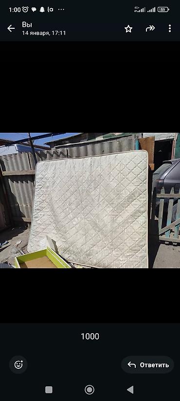 2) Матрас со светлым (молочным) стёганым чехлом с узором «ромбы». Также пружинный, двуспальный формат (примерно 190–200 × 140–160 см). Плотная обвязка кромки.