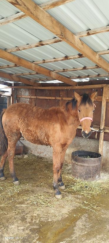 Полу кров айгыр сатылат,бою 1,55 см жашы 7 жаш .3 асый колу буту таза .байгеге чабылып жургон.резултат бар баасы 250 000сом жер улака дагы жакшы .жакшы чуркайт,оозу жумшак ,журушу бар басыктуу