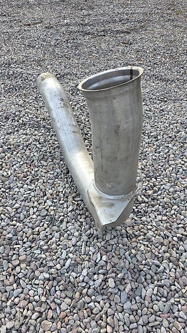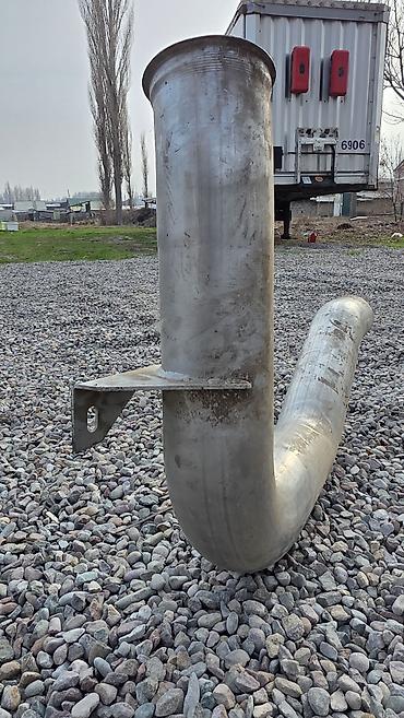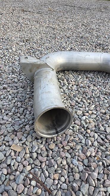 - Конфигурация: длинный изогнутый участок с плавными коленами; с раструбами/развальцовкой на концах для стыковки; приваренная монтажная проушина/кронштейн