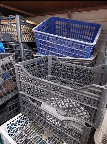 Лот: тара для хранения и перевозки Состав: - Пластиковые овощные/фруктовые ящики-корзины разных размеров и цветов (черные, синие, белые, фиолетовые). Решетчатые, штабелируемые. - Картонные коробки...