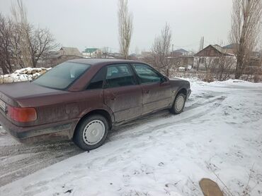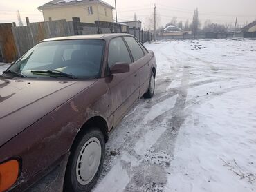 Audi 100 C4 (седан), темно-бордовый цвет. Кузов и экстерьер: - Классический дизайн C4 с широкими бамперами и фирменной решеткой. - Тонированные задние стекла. - Рейлинги/поперечины на крыше для кр...