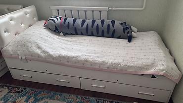 Детская/подростковая кровать с мягким изголовьем и ящиками для хранения.