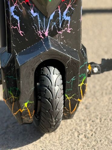 - Колеса: переднее широкое пневматическое/литое колесо для устойчивости и сцепления; задние ролики для вращений и дрифта.