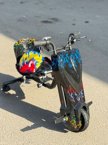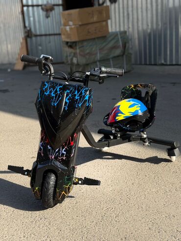 - Формат: трехколесный дрифт-трайк с сиденьем и двумя задними опорными роликами для контролируемых заносов.