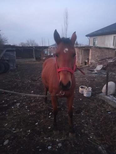 Срочно срочно жашы 3 жаш эркек малга улака универсал басыгы бар женил оозу жумшак Кеми бар ат ысык атада Лошадь под верховую езду - Масть: гнедая, с белой отметиной на морде и белой «чулочной» отм...