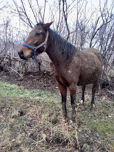 Срочно срочно жашы 3 жаш эркек малга улака универсал басыгы бар женил оозу жумшак Кеми бар ат ысык атада Лошадь под верховую езду - Масть: гнедая, с белой отметиной на морде и белой «чулочной» отм...