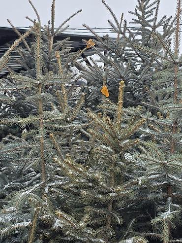 - Ели и пихты разных размеров: густые кроны, ровные стволы, свежий голубовато‑зеленый окрас хвои.