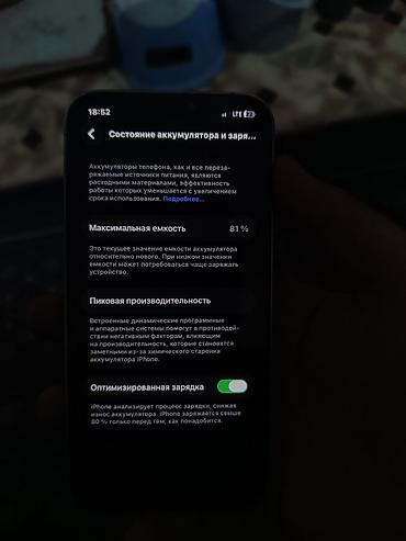- Аккумулятор: максимальная ёмкость 81% (по данным в настройках), оптимизированная зарядка включена