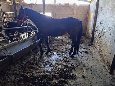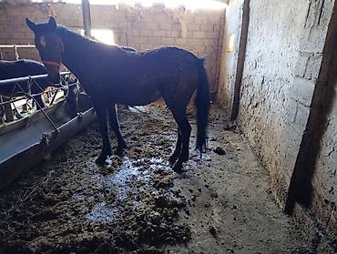 Лошадь (жеребёнок/молодая кобыла) в стойловом содержании. Описание: - Масть: темно-гнедая/вороная, черный хвост и грива. - Возраст визуально молодой, компактное телосложение, крепкие конечности. -...