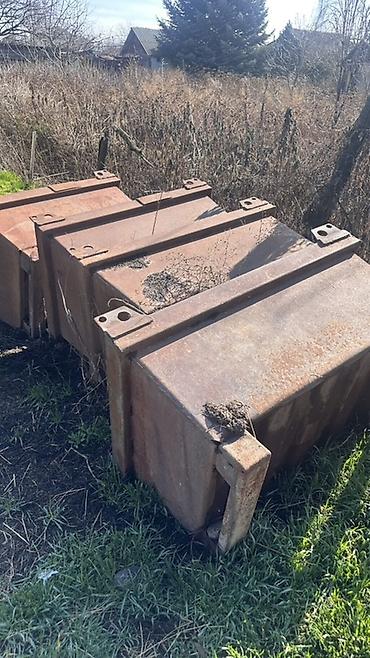 Металлические бункеры/контейнеры из толстостенного листа (сварная конструкция). Промышленные модули прямоугольной формы с монтажными «ушами» по углам для строповки/крепления и продольными усилителями сверху. Подходят как емкости/накопители для сыпучих и строительных материалов, как короба для отходов, хранилища, основание под технологические шкафы, а также для переоборудования в уличные шкафы, погребки, топочные камеры, противовесы и пр.