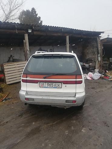 Минивэн/универсал белого цвета с киргизской регистрацией (номерные знаки 01 KG). Кузов 5‑дверный, просторный салон и большой багажник — удобен для семьи и хозяйственных нужд.