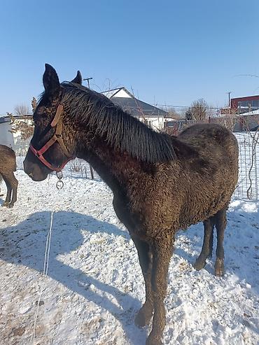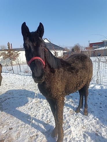Молодой жеребёнок темной масти. - Возраст: примерно 6,7 месяцев(на фото — молодая кабылка ). - Масть: вороной/чёрный, густая зимняя шерсть. - Комплекция: высокий на ноге, ровная спина, крепкие кон...