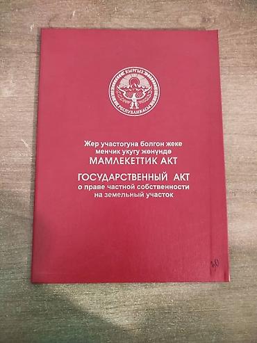 Ачы массивинен участок сатылат Государственный акт о праве частной собственности на земельный участок (Кыргызская Республика). Описание: - Официальный документ государственного образца. - Обложка ...