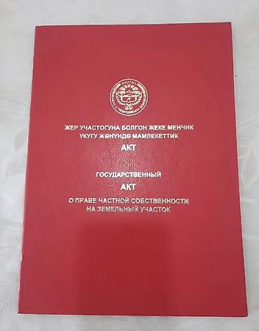 Земельный участок с государственным актом собственности (КР). Токбай айылы.2-линия бурчта эки кочонун кесилишинде жайгашкан.суу,свет бар.документи таза.магистрал жолунан 100метр аралыкта.же эки адам болуп алса да болот.мектеп ,садик,мед пункт,балдар аянтчасы ,футбол аянтчасы жанында.аба таза салкын.