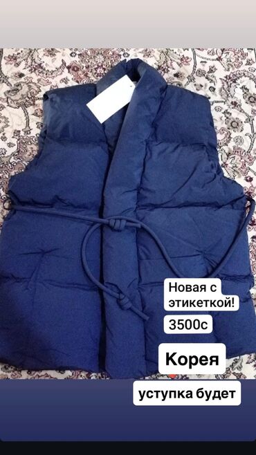 Утеплённый жилет-накидка цвета тёмно-синего цвета.