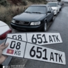 Audi A6 седан, поколение C4. Темно-зелёный цвет кузова. Номера KG. Эмблемы и шильдики: «A6» и «2.5» на крышке багажника, сдвоенные выхлопные трубы.