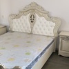 Секция/стенка для гостиной из ламинированного ДСП под светлое дерево с фигурными накладками и круглыми ручками.