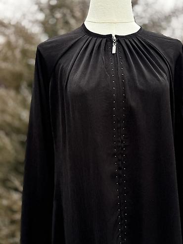 - Рукава на манжетах с вертикальными рядами серебристых клепок.