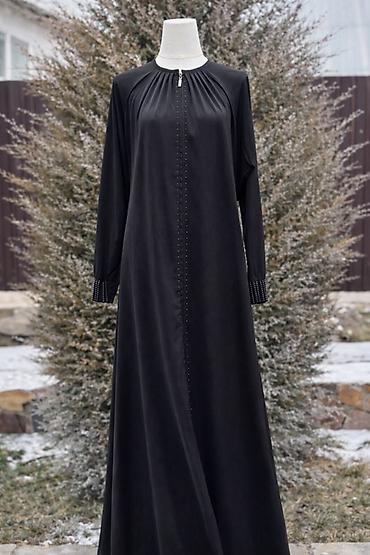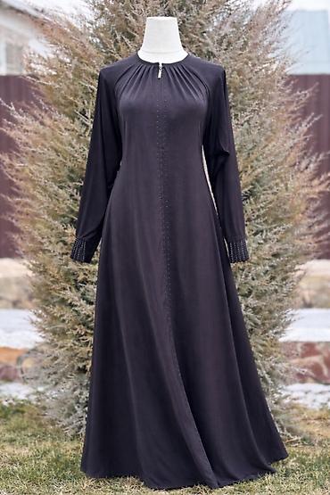 Длинное черное платье с длинными рукавами