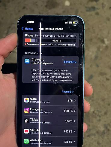 - Память: 128 ГБ (на фото — экран «Хранилище iPhone»).