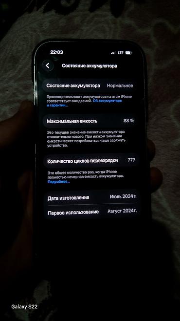 - Аккумулятор: максимальная ёмкость 88%, показано 777 циклов перезарядки