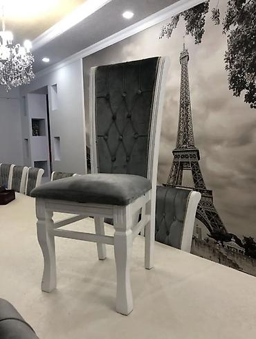 Стулья с мягкими сиденьями разных цветов: серого, бирюзового и темно-серого. Каркас стульев выполнен из металла, окрашенного в белый цвет. Стулья имеют удобную спинку с тремя перекладинами. Легкие ...