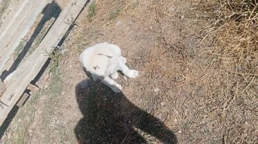 Щенки смешанных окрасов - На фото — помёт щенков, выращиваются в утеплённом вольере на подстилке из соломы. - Окрас щенков разный: белые, бело‑пятнистые (с чёрными и серыми отметинами), а также чё...