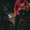 Скутер 50–150 см³ класса «туринг/город», красный, с агрессивной