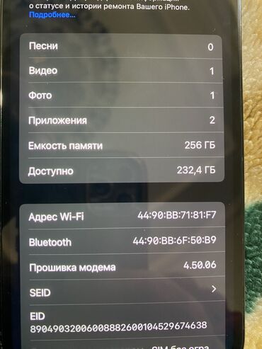- Face ID: в статусе «Неполадка» (указано в меню «Об этом устройстве»)