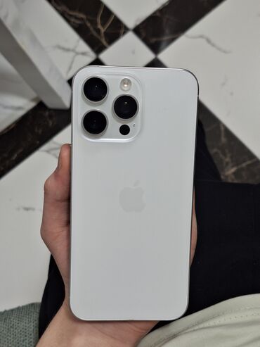 Apple iPhone 15 pro max white titanium (белый ), корпус со строгими плоскими гранями из металла и матовым стеклом. Тройная основная камера с крупными модулями и лидаром: широкоугольный, сверхширокоугольный и телеобъектив — ночной режим, макросъёмка, портреты, 4K‑видео, стабилизация. Вспышка True Tone.