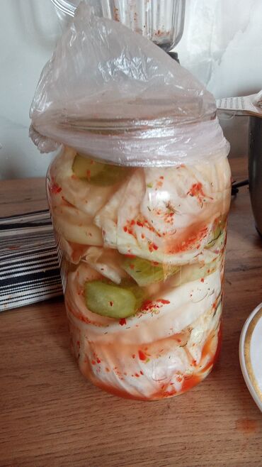 - Стеклянные банки под плёнкой/крышкой (квашеная капуста с огурцами).