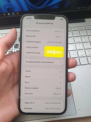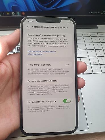 IPhone 12 Pro Max, 256 ГБ, все оригинальные, ничего не меняся, батарея родная 78%, динамика храпит видимо нужно чистка, фейс тритон работает, нахожусь в городе кызыл кия